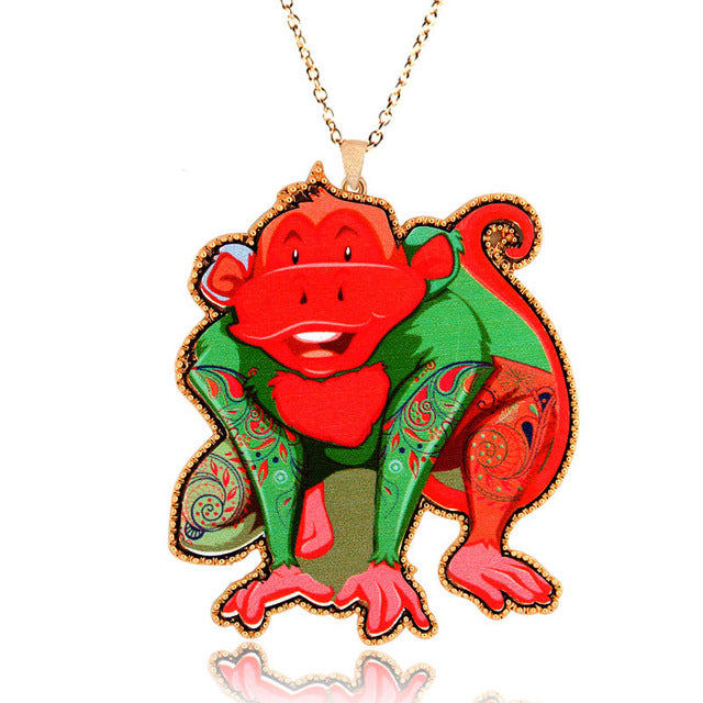 Cubic Monkey Pendant Necklace